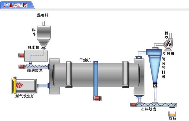 2、采用順流干燥方式,煙氣與濕物料由同一側(cè)進入干燥機,可以利用高溫?zé)煔猥@得很高的蒸發(fā)強度,烘干機溫度低,熱效率高;